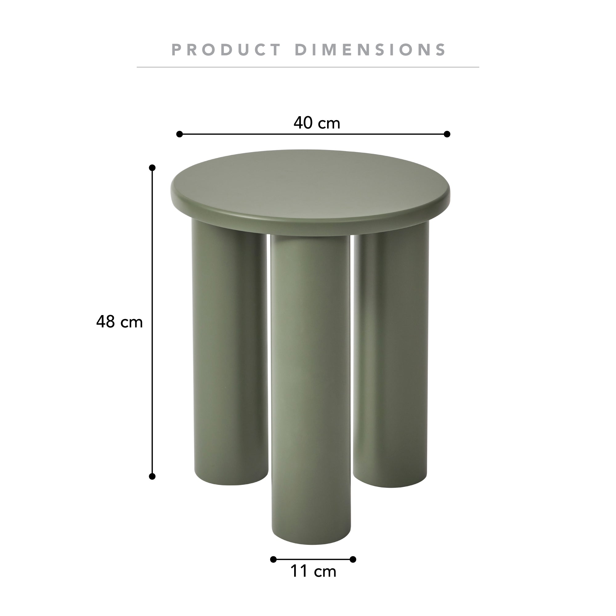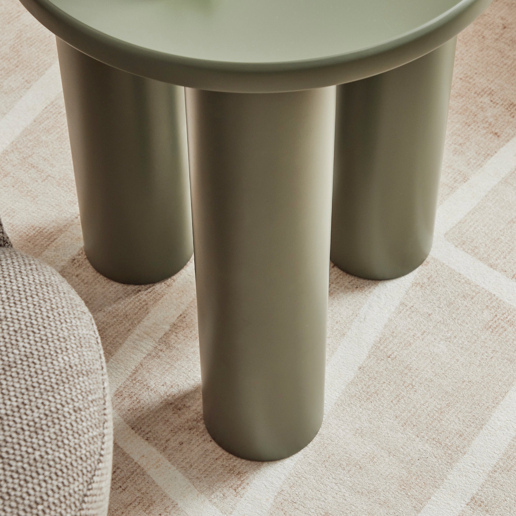 The Cooper & Co. Kingsley Side Table Green adds a playful pop of colour and shape to your space. With its smooth round top and three cylindrical legs, this sculptural piece blends function with a bold design twist—perfect beside a lounge chair, couch, bed, or in a cosy reading nook.
