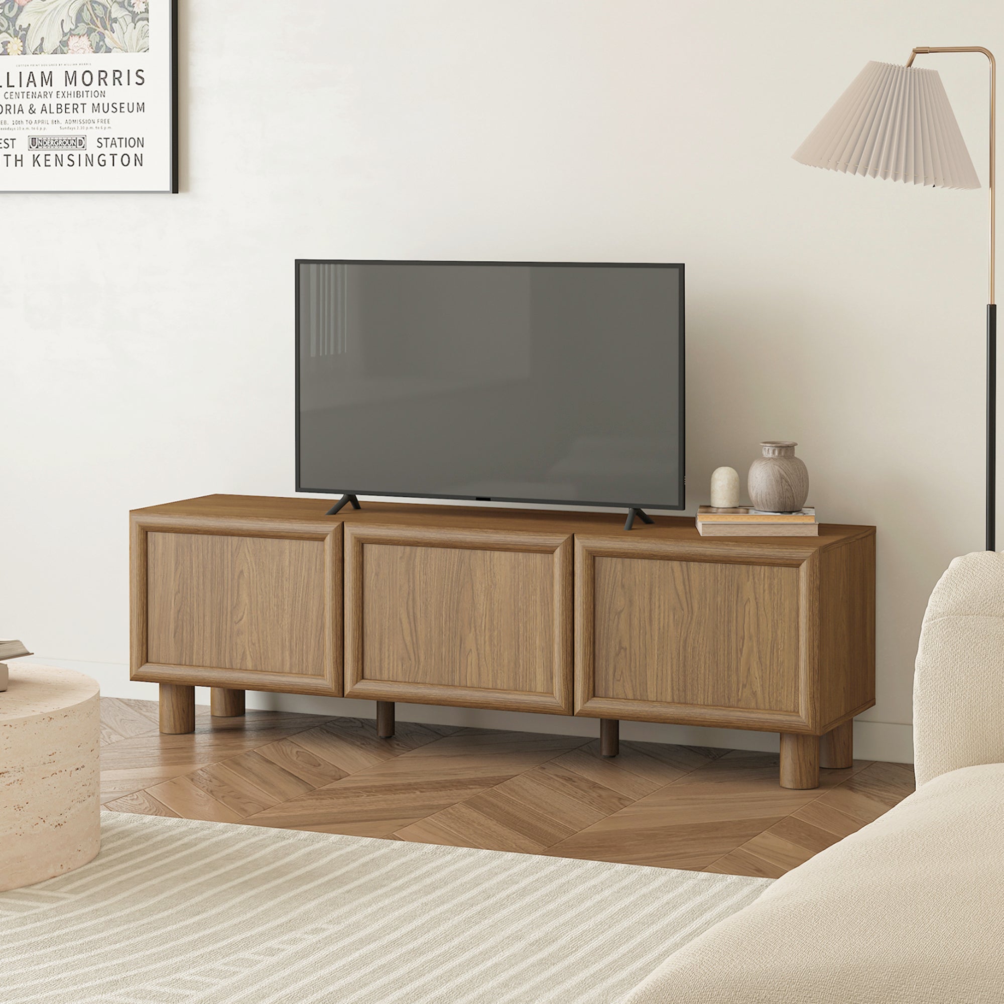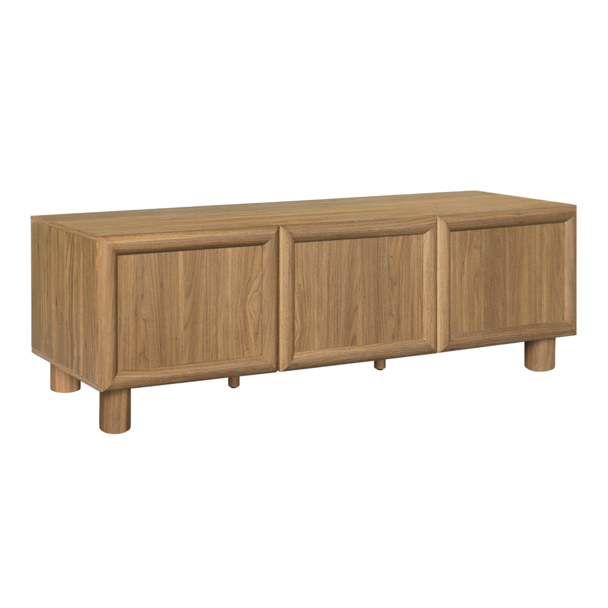 The Cooper & Co. Linero Entertainment Unit in Walnut blends sculptural detail with everyday function. Featuring raised panel fronts in a deep walnut finish, this piece adds warmth and texture to your lounge while keeping storage neatly tucked behind its push-to-open doors.